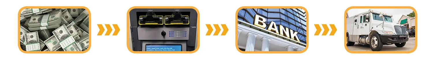 Allow your Merchants to focus on other business needs. Smart Safes through National Link are a simple and efficient way to automate cash cycles. This comprehensive approach to cash management improves staff productivity by reducing cash handling costs and maximizing control, visibility and management of cash inventory.
